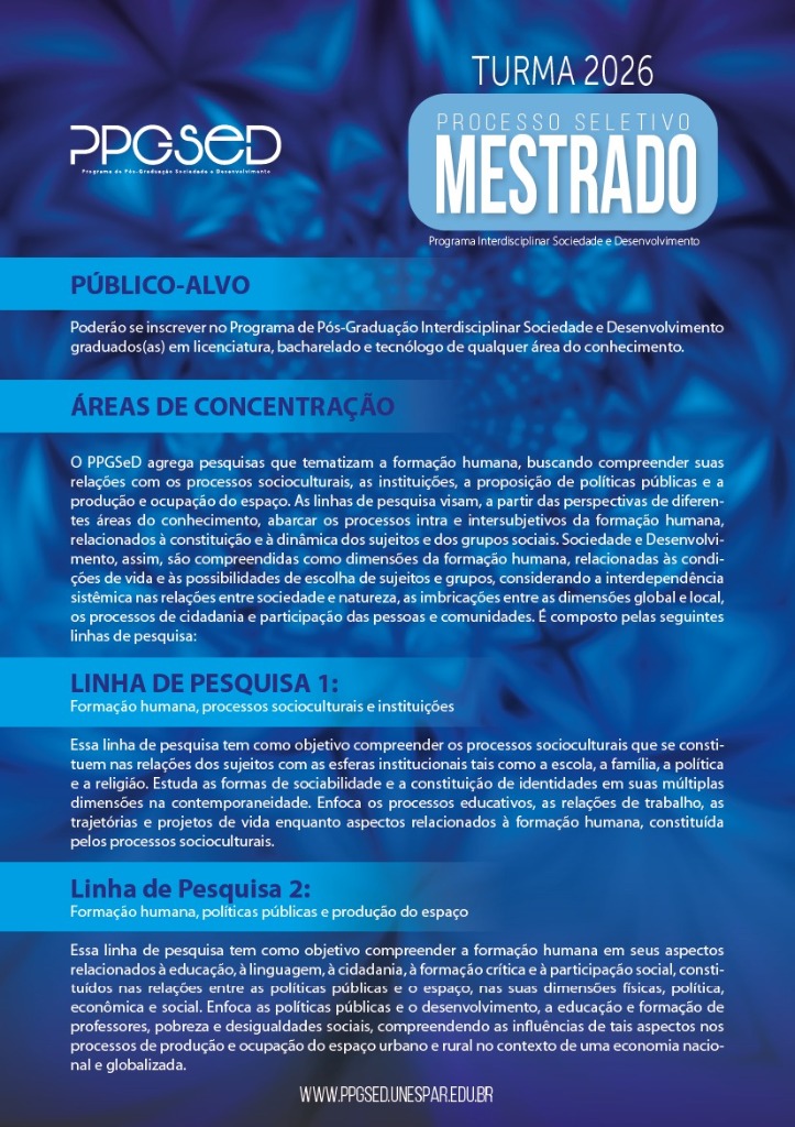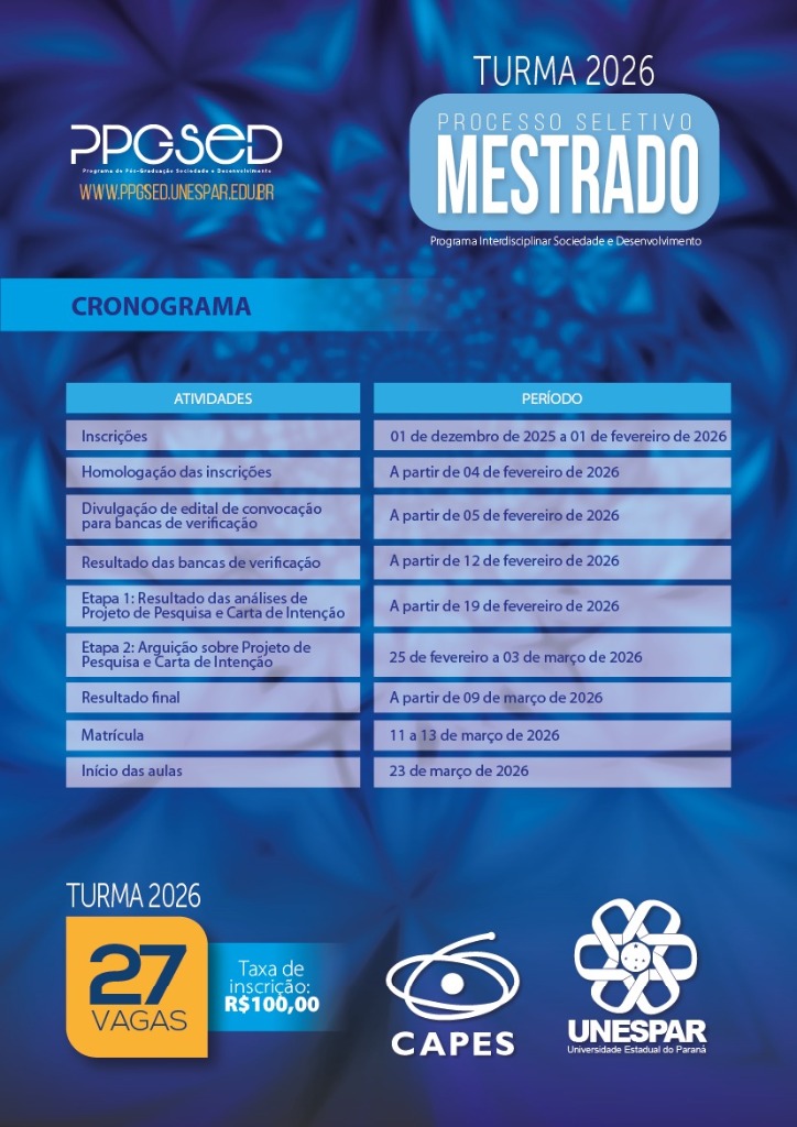 Últimos dias para inscrição no Mestrado Interdisciplinar Sociedade e Desenvolvimento