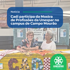 Pegando carona na Mostra de Profissões 2024 da Universidade Estadual do Paraná (Unespar), as integrantes do Centro de Apoio e Desenvolvimento do Idoso (Cadi) realizam, hoje (8), das 13h às 18h, oficinas de artesanato no pátio do campus de Campo Mourão.