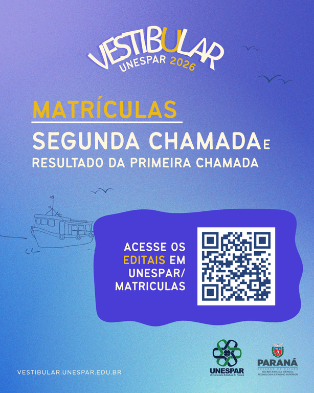 Unespar divulga editais com resultado da 1ª chamada e convocação da 2ª chamada do Vestibular 2026